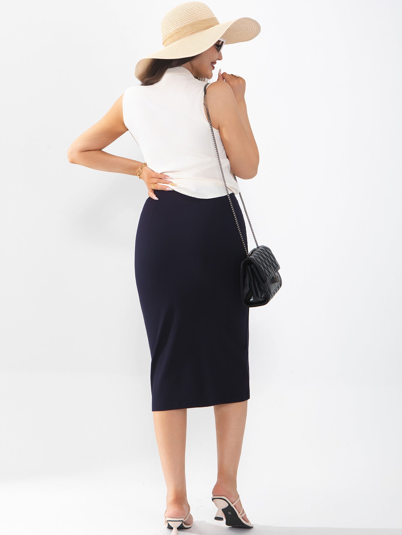 Women's midi skirt is fashionable and stylish, wrinkle free, with elastic pockets for office environment