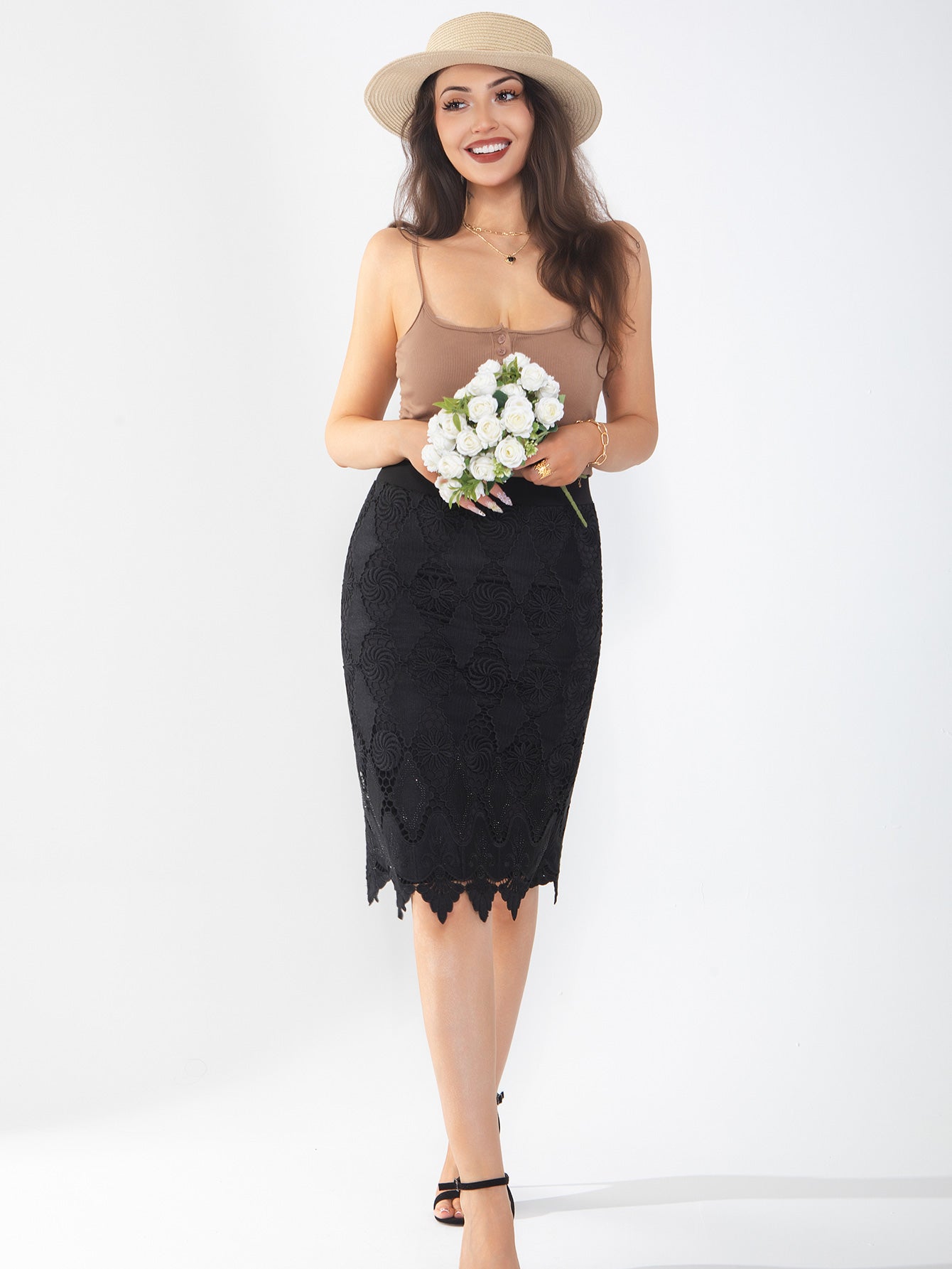 Women's midi skirt with lace hollow out, classic and fashionable for going on vacation