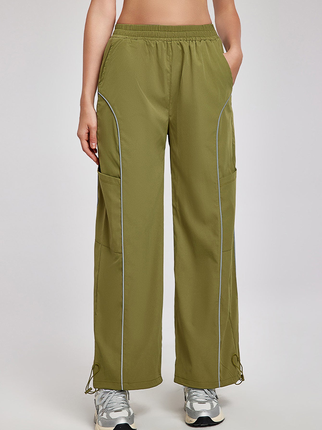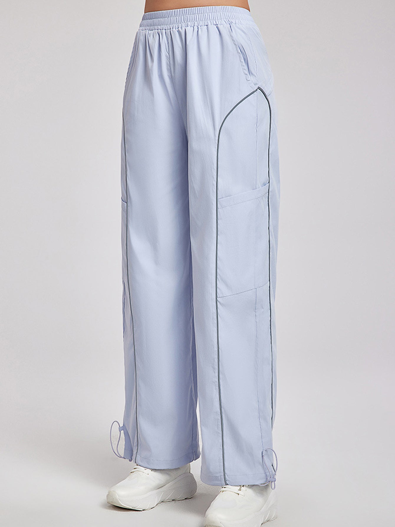 Women's pants high waisted loose straight tube drawstring pocket for sports and leisure, outdoor hiking and mountaineering