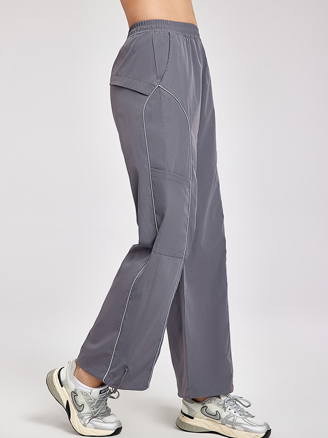 Increase quantity for Women's pants high waisted loose straight tube drawstring pocket for sports and leisure, outdoor hiking and mountaineering