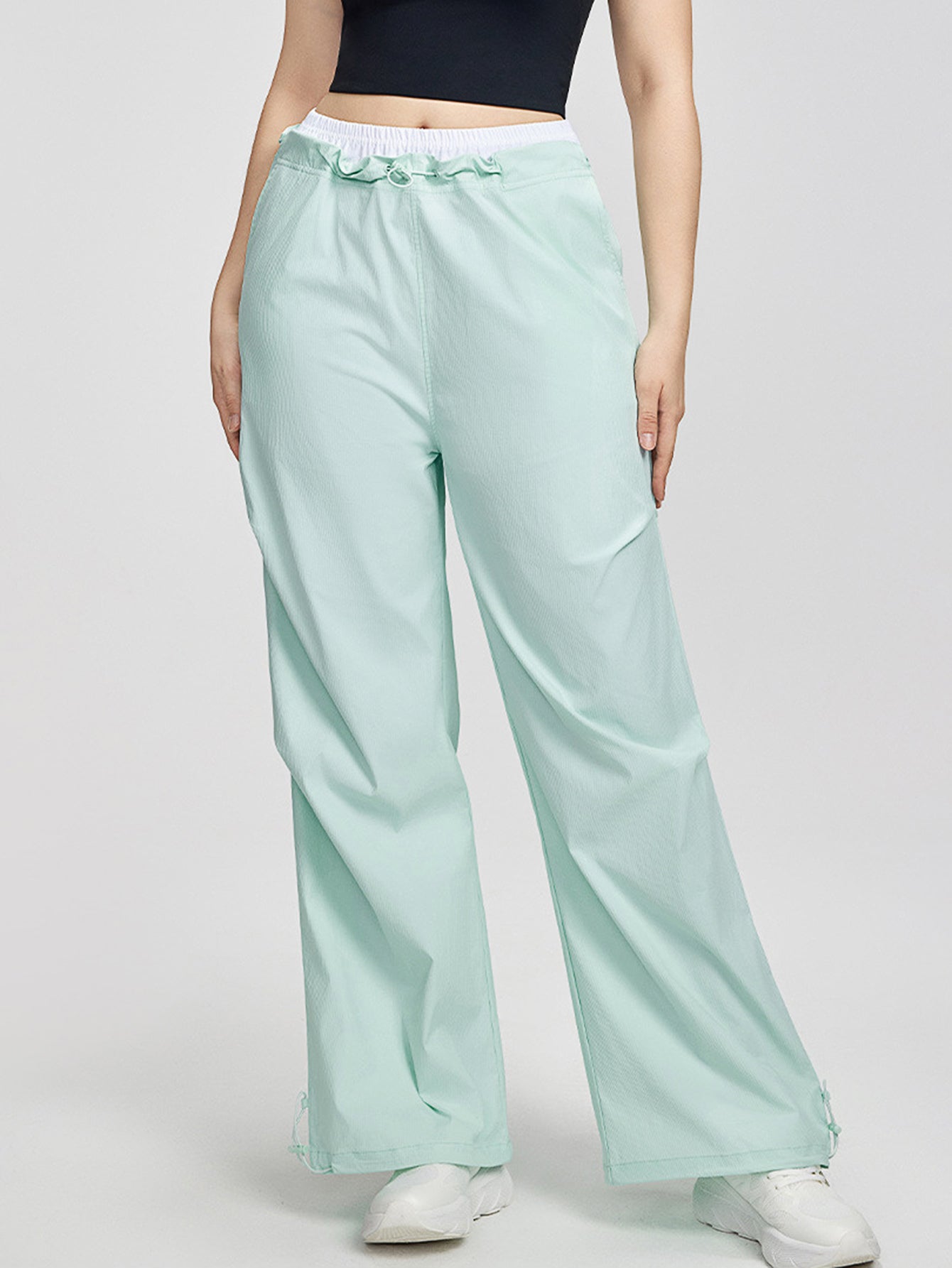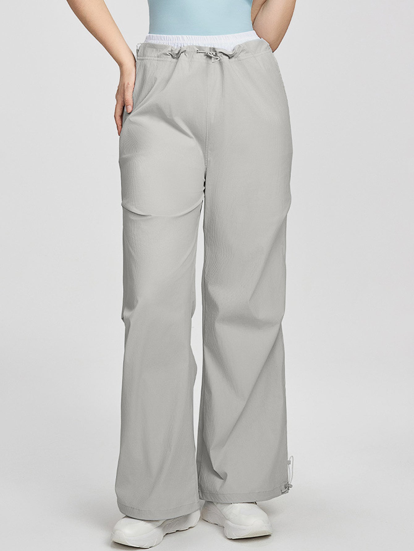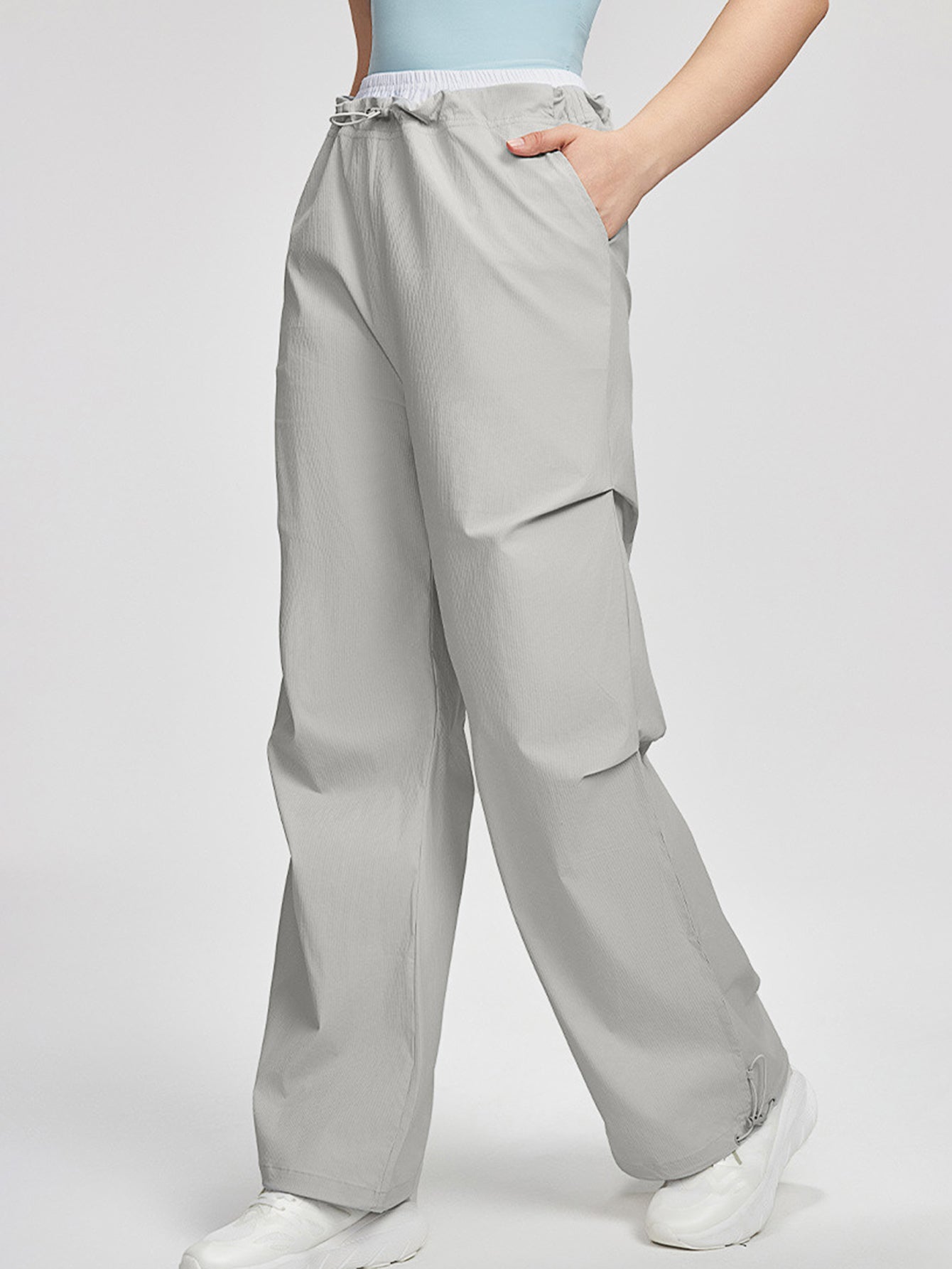 Increase quantity for Women's pants high waisted loose straight tube drawstring pocket for sports and leisure, outdoor hiking and mountaineering