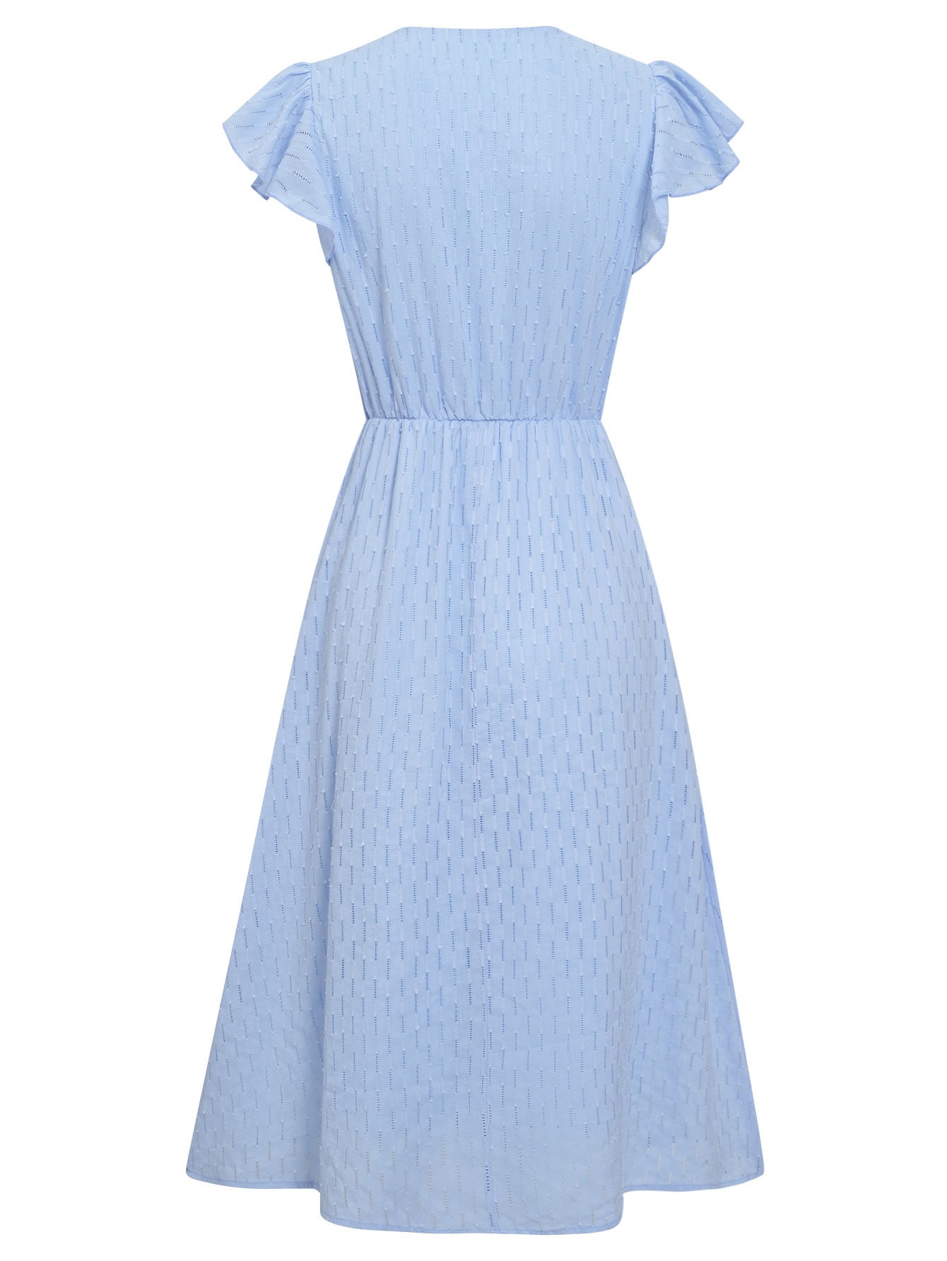 Increase quantity for Women's summer V-neck solid color waist cinching dress