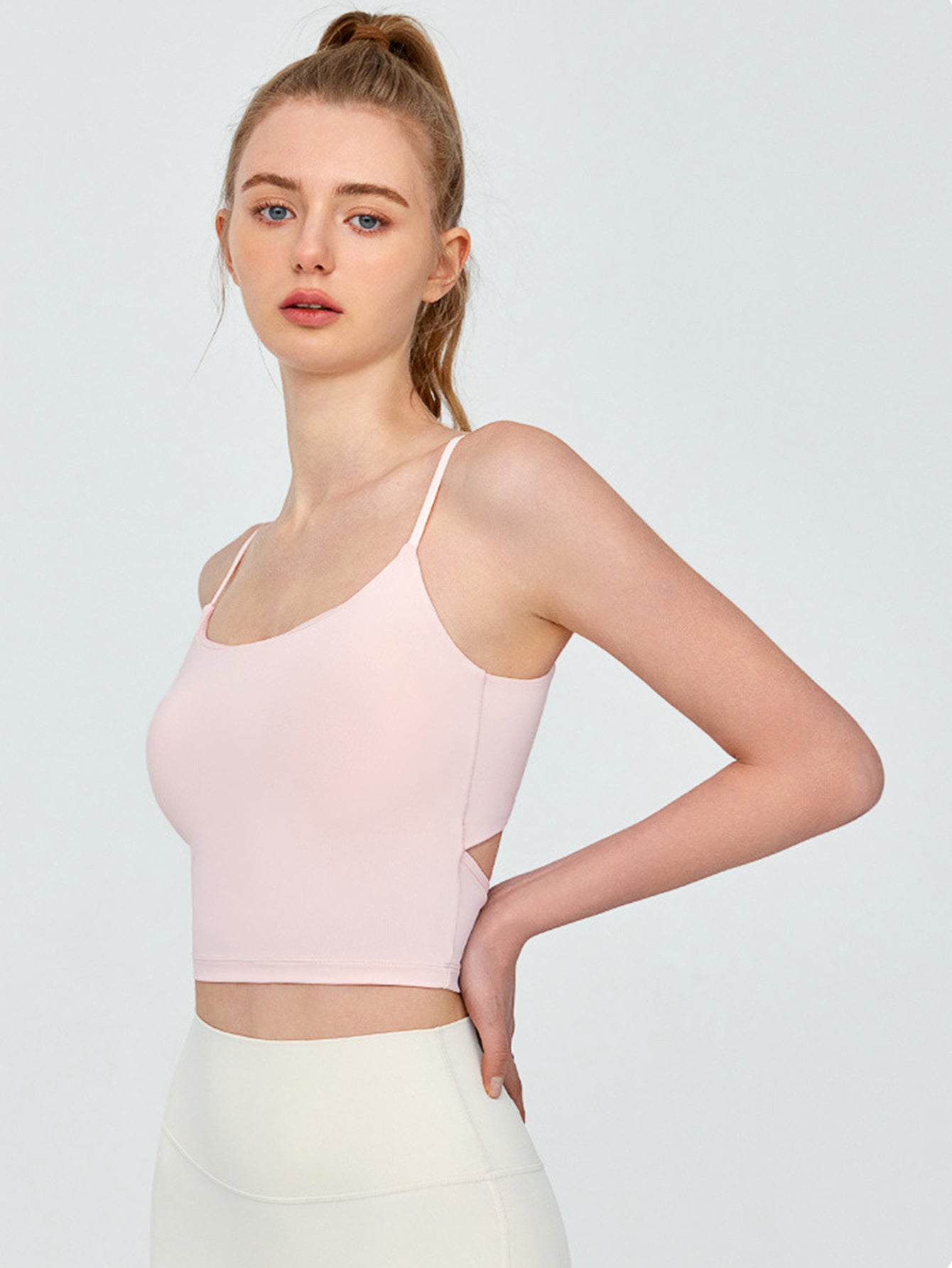 Women's vest with thin shoulder straps, sports and fitness top, yoga gathering bra, running training